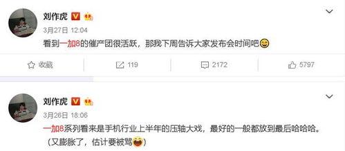 最近刘作虎的微博可是炸开了锅!这位手机界的大佬,竟然在微博上爆出了一个大料,让粉丝们兴奋不已。今天,就让我带你一起深入挖掘这个话题,看看刘作虎这次到底说了些什么吧!
